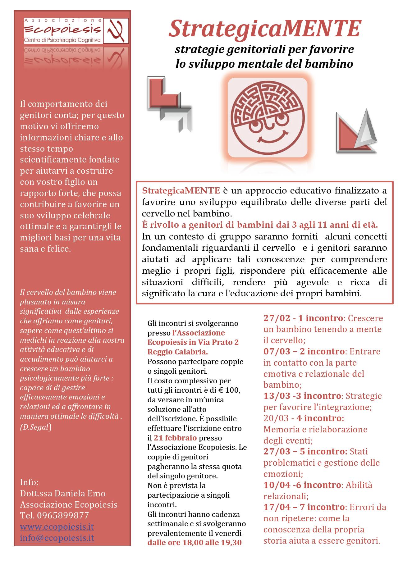 Strategie genitoriali per favorire lo sviluppo mentale del bambino” che si terrà presso la sede dell’Associazione Ecopoiesis sita in via Prato, 2 a Reggio Calabria a partire dal 27 febbraio 2015.